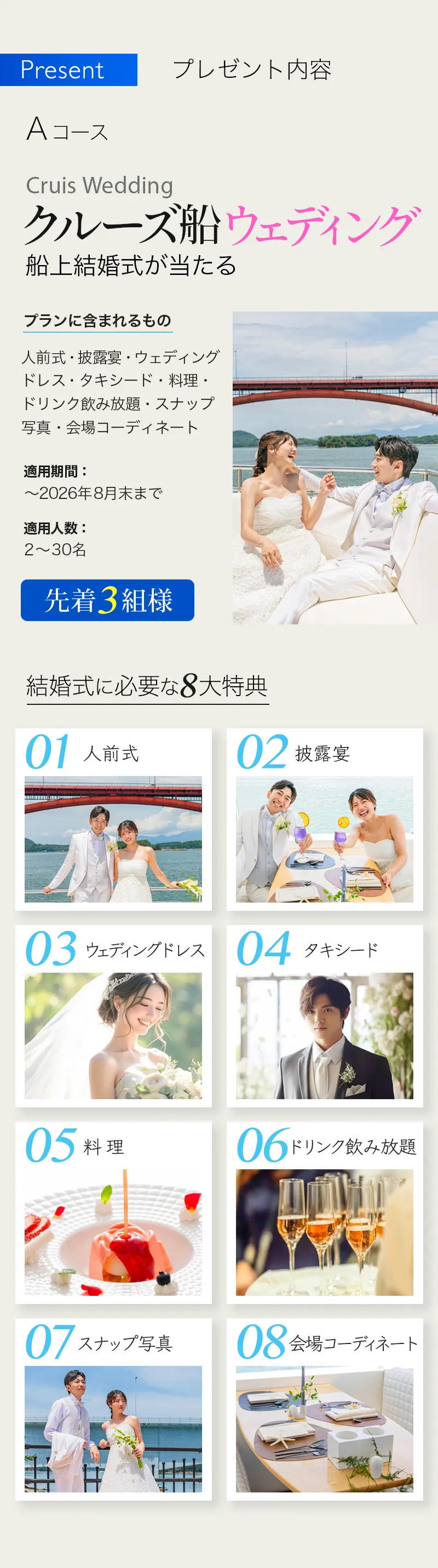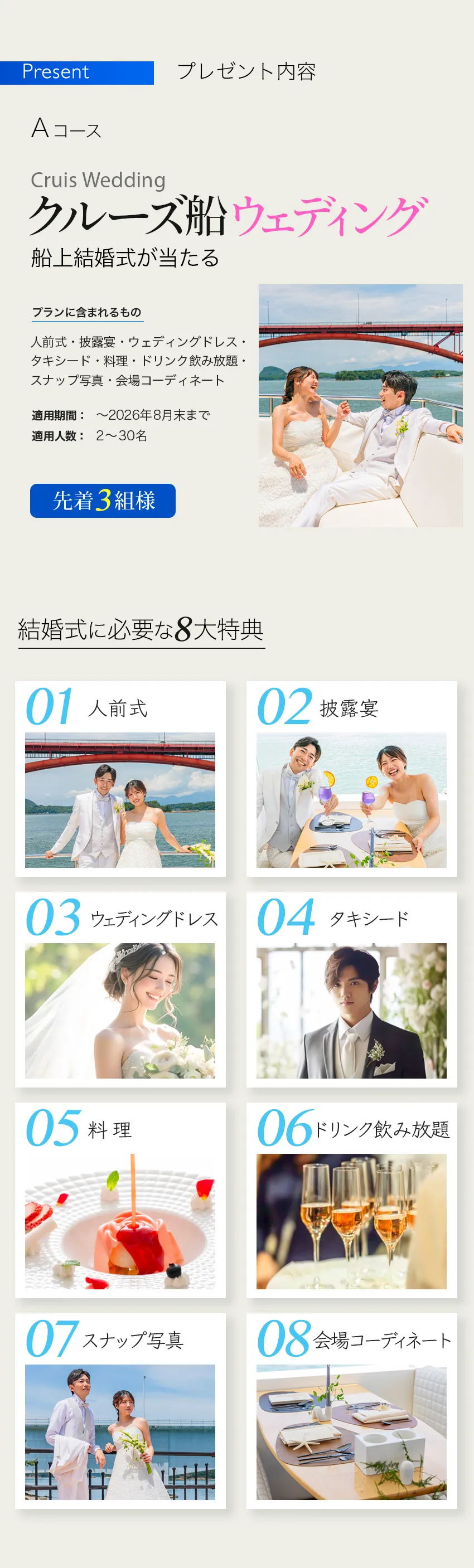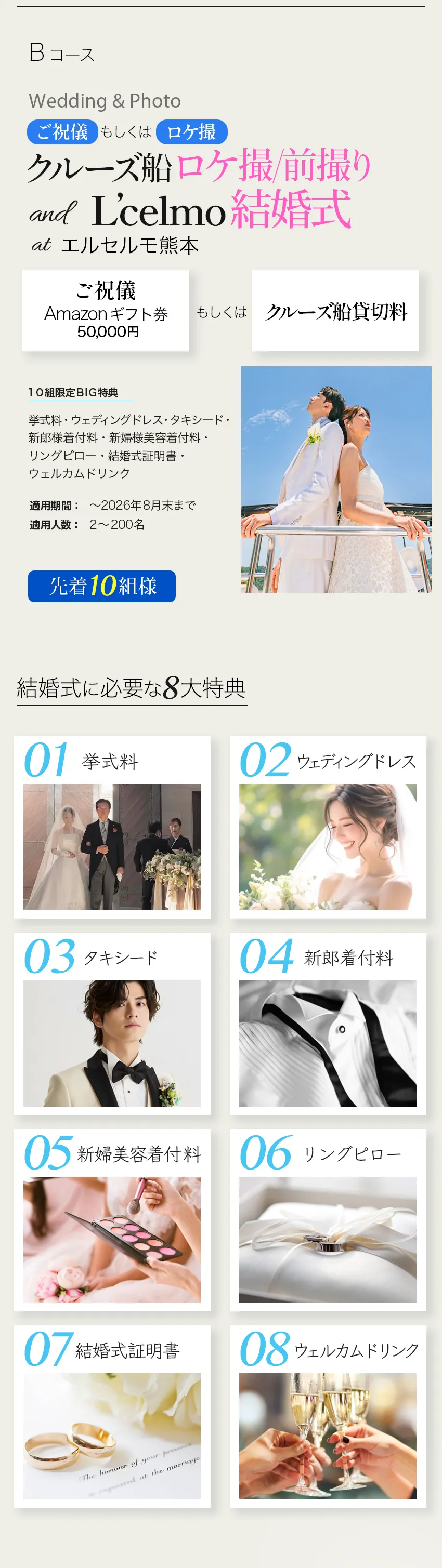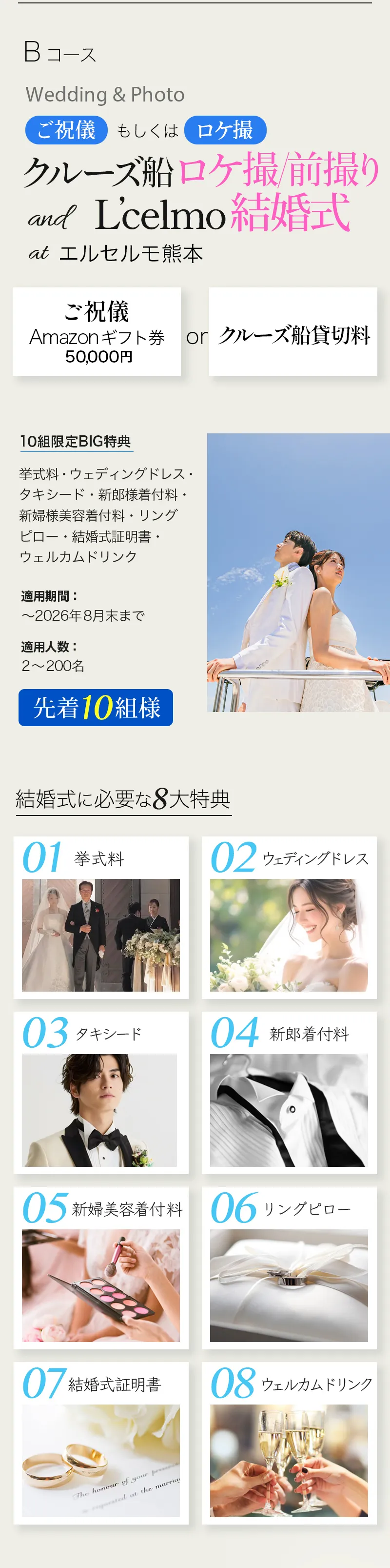 [Aコース] \先着3組様/ ⇒クルーズ船ウェディング [Bコース] \先着10組様/ ⇒ご祝儀付き クルーズ船でのロケ撮/前撮り and エルセルモ結婚式 at エルセルモ熊本 ご祝儀 (Amaonギフト券 50,000円) もしくは クルーズ船貸切料 |
