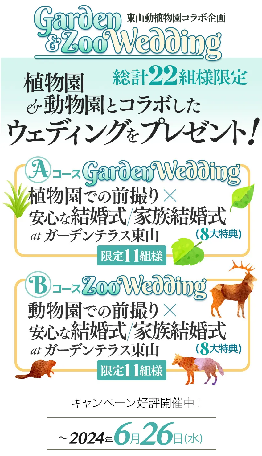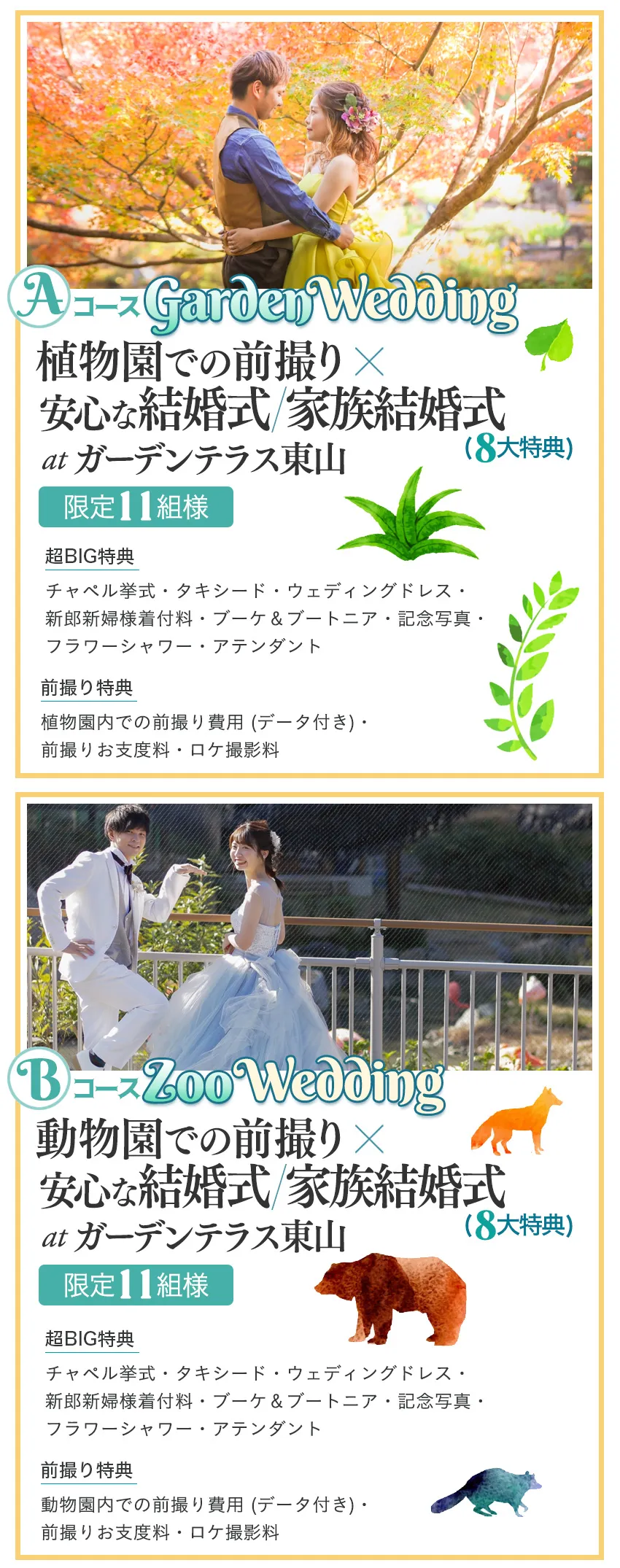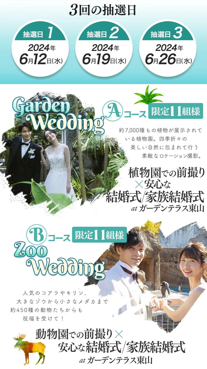 ★11組様に \植物園での前撮り&安心な結婚式/家族結婚式/ ★11組様に \動物園での前撮り&安心な結婚式/家族結婚式/ をプレゼント! |